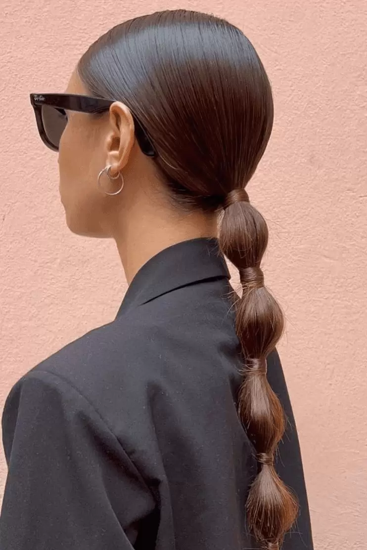 O clássico rabo de cavalo ganha uma nova versão com elásticos ao longo do comprimento, formando pequenas “bolhas” no cabelo. Um toque moderno e muito simples de fazer.