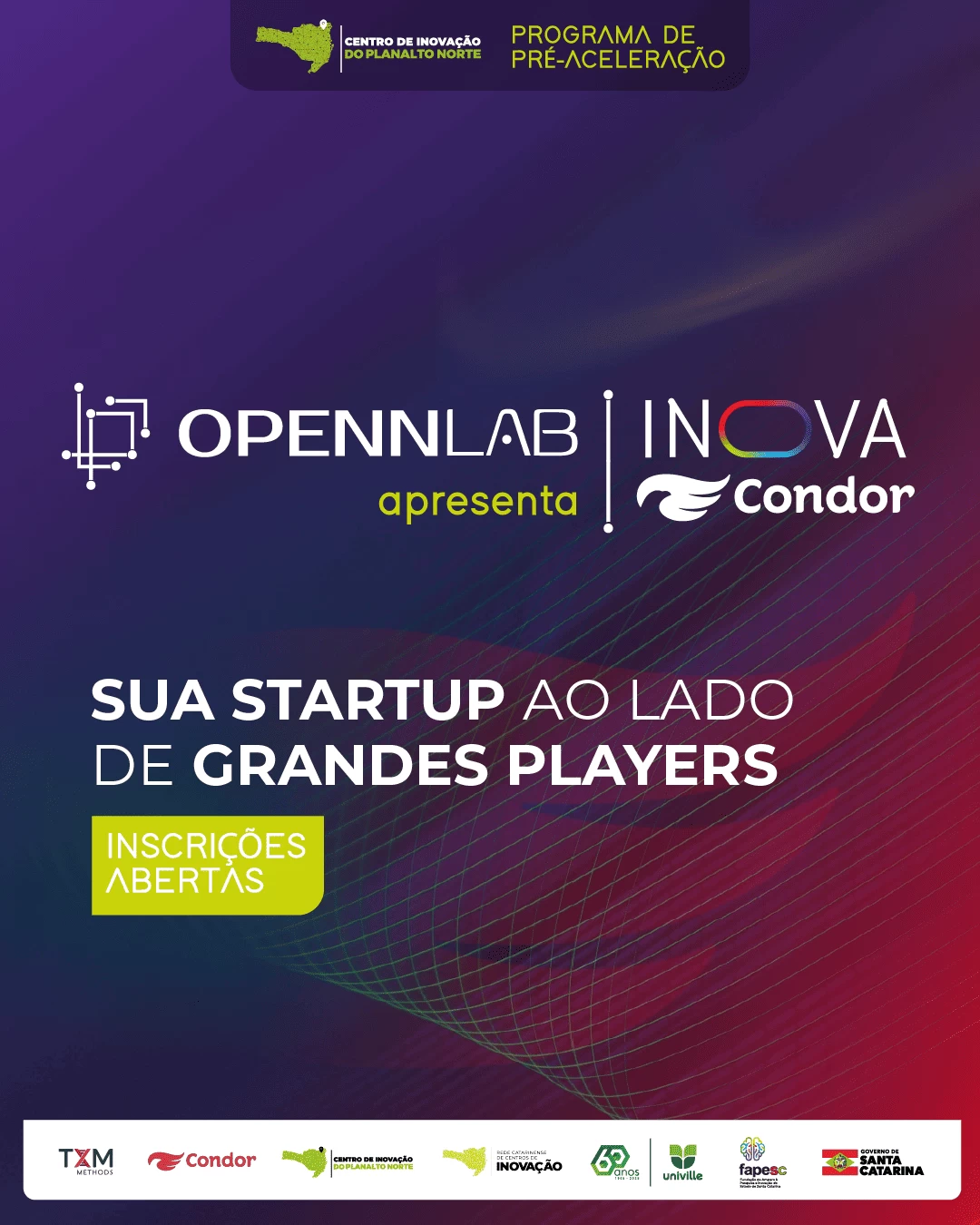 A iniciativa foi apresentada durante o Startup Summit 2025, maior evento de inovação e empreendedorismo do Sul do Brasil, e contará com a parceria do Centro de Inovação do Planalto Norte e da Fapesc (Fundação de Amparo à Pesquisa e Inovação de Santa Catarina), tendo a execução da TXM Methods.