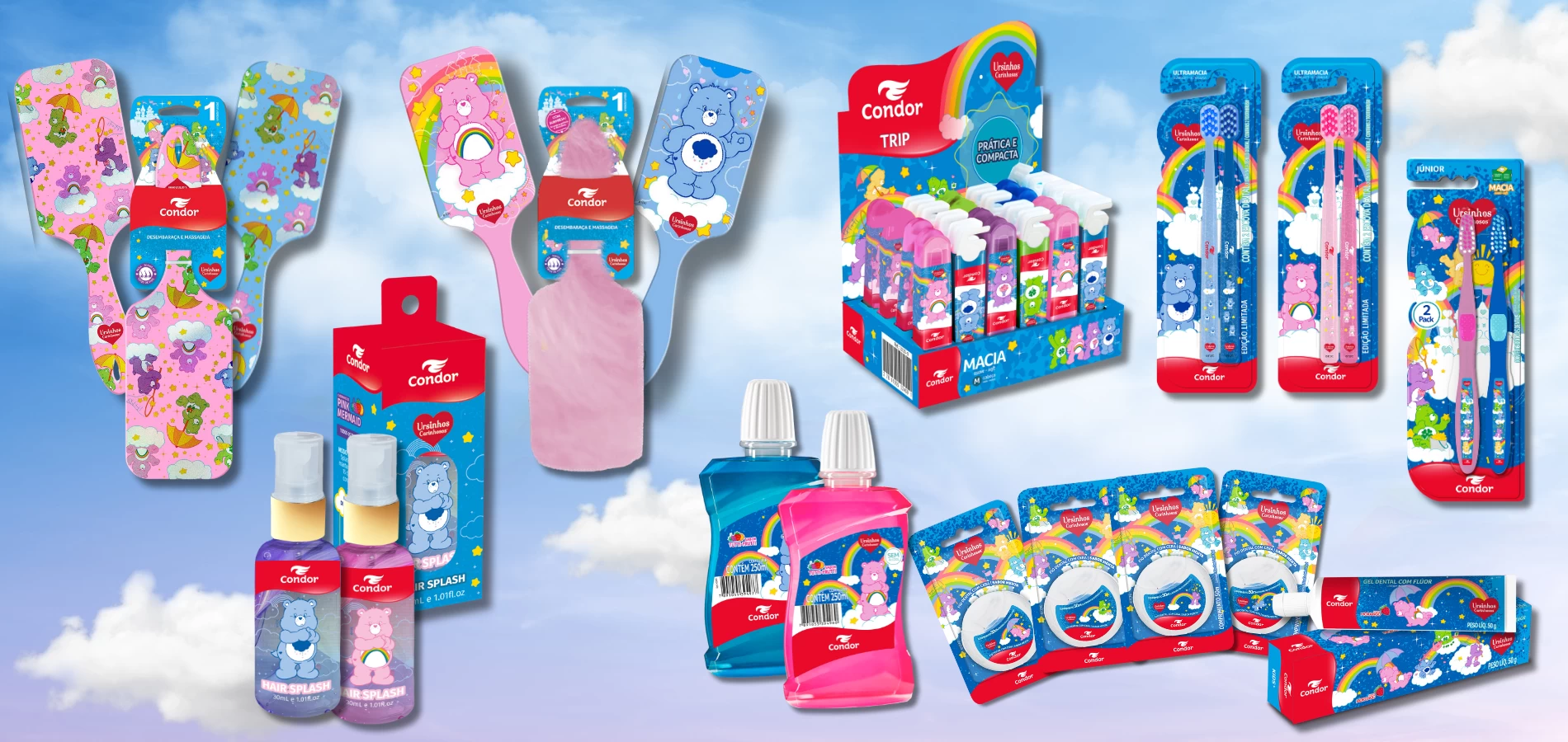 Ursinhos Carinhosos: Resgatando a nostalgia e a conexão afetiva de gerações, a nova coleção da Condor com os Ursinhos Carinhosos inclui: