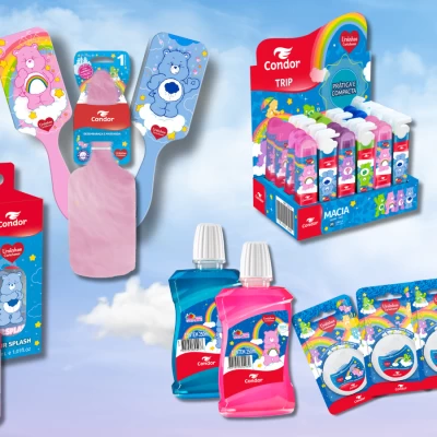 Entre os destaques, a marca apresenta suas coleções licenciadas com personagens famosos e queridos do público (Snoopy, Ursinhos Carinhosos e Capitão América), uma parceria inédita com a Coca-Cola e a nova Escova Dental Condor Agile Black.
