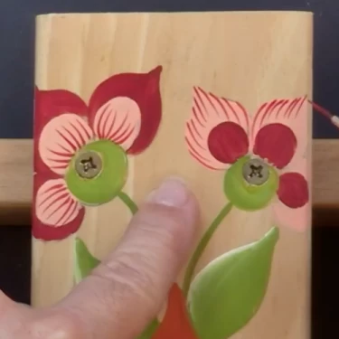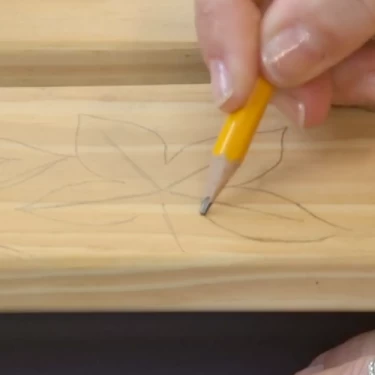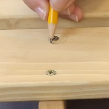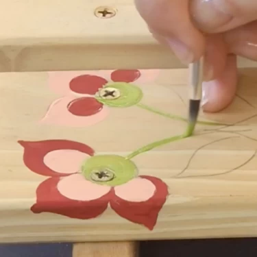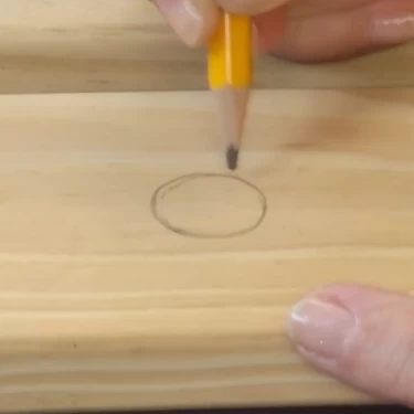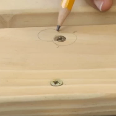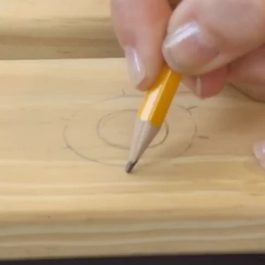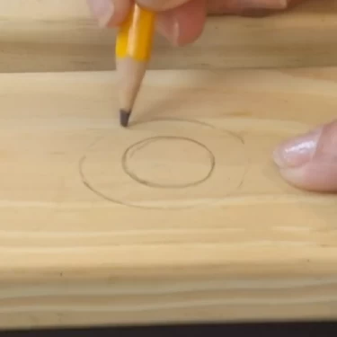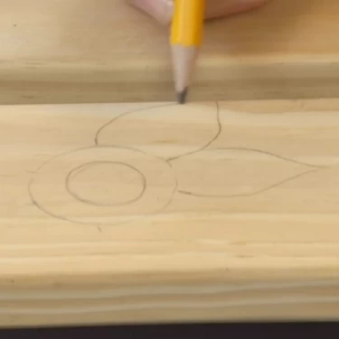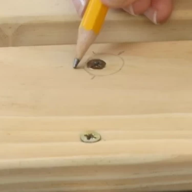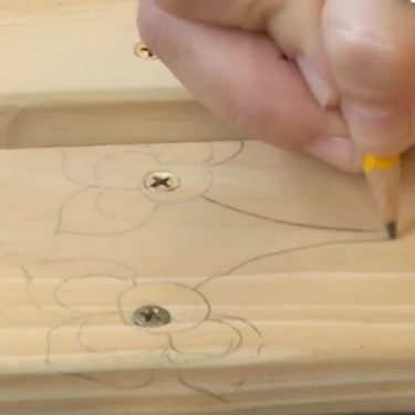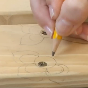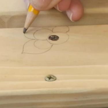 Sobre a superfície de madeira rústica, risque um círculo à mão livre, utilizando o lápis. Aproveite os parafusos para formar o miolo das flores.