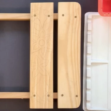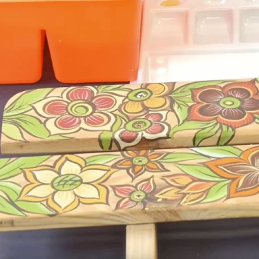 - Tinta acrílica nas cores: marfim, verde pistache, preta, salmão, laranja, marrom, vermelho, vinho e metálica dourada
