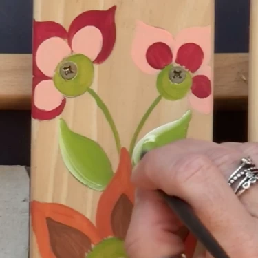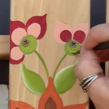 Aplique a segunda demão de tinta sobre as pétalas e miolo das flores.