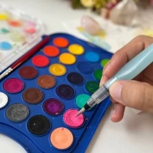 Sem materiais caríssimos. Uma aquarela escolar já é o suficiente para brincar.