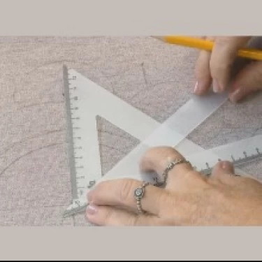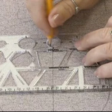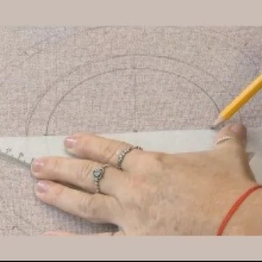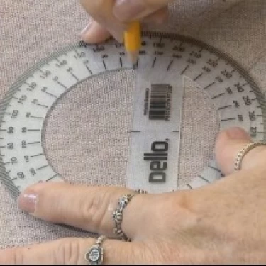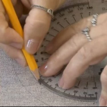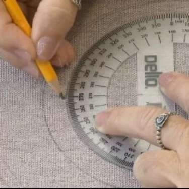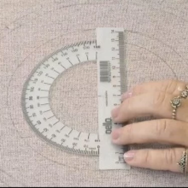 Posicione a marca central do transferidor sobre o ponto central do tecido.