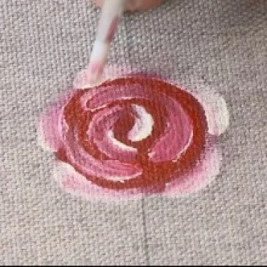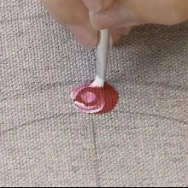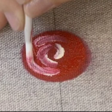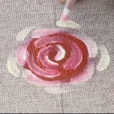 Ainda com a tinta Branca, desenhe uma vírgula em cada lateral da bolinha, formando as pétalas superiores da rosa.