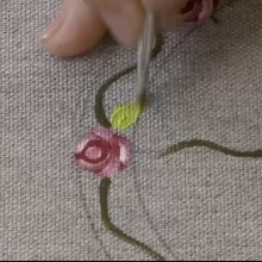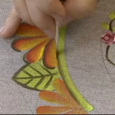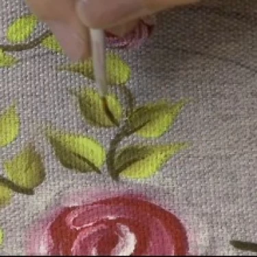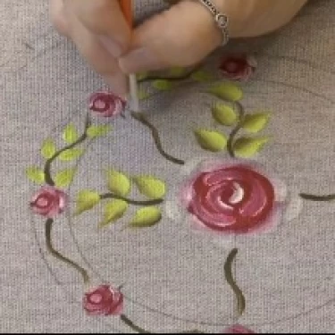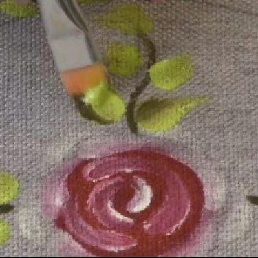 Com as tintas Verde e Sépia no pincel língua de gato, reforce a pintura das folhas das rosas.