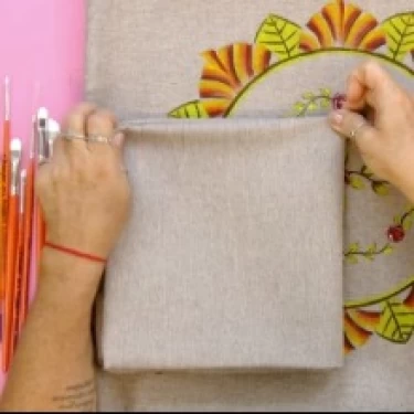 Dobre a capa de almofada ao meio e novamente ao meio.