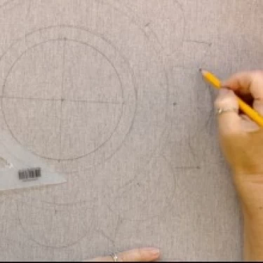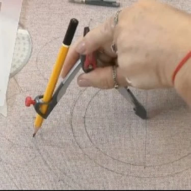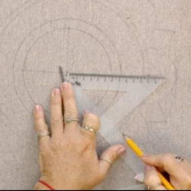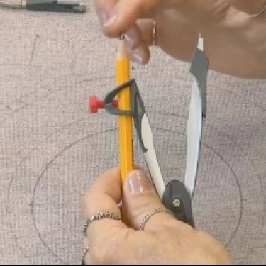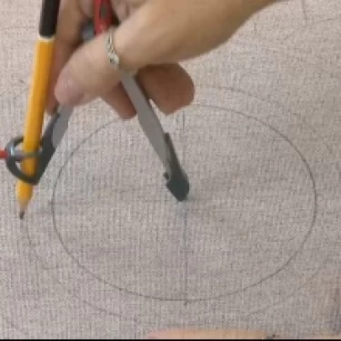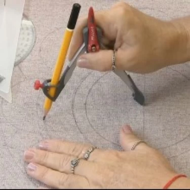 Coloque a ponta do compasso sobre a marca central do tecido e risque o segundo círculo, com distância aproximada de 2 cm do primeiro.