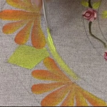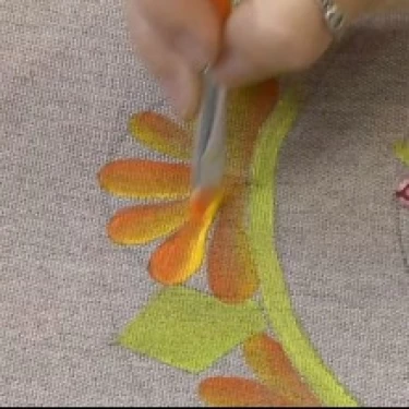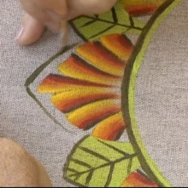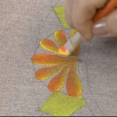 - Tinta para tecido nas cores: Verde-Claro, Amarelo, Laranja, Sépia, Vinho, Vermelho e Branco