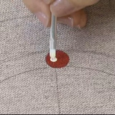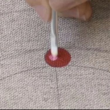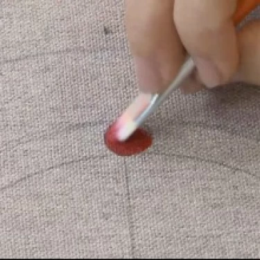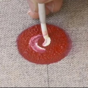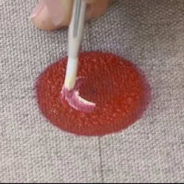 Carregue o batedor na tinta Vermelha e trabalhe-o sobre o godê para que a tinta se integre bem à espuma.
