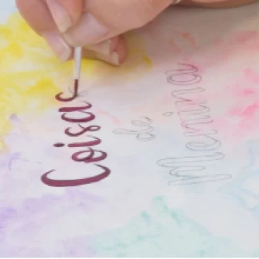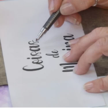 Dilua a tinta vinho em água e, pinte as letras com o pincel filete do kit 596-0.