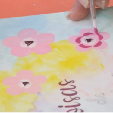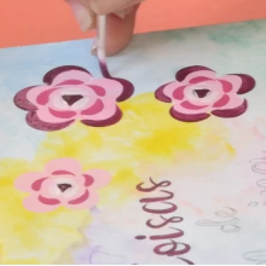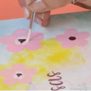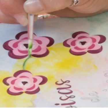 Com a tinta rosa-médio, faça uma vírgula na base de cada pétala.