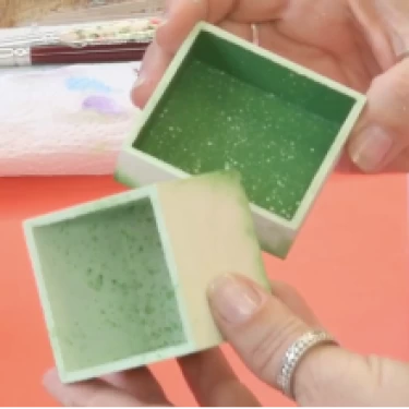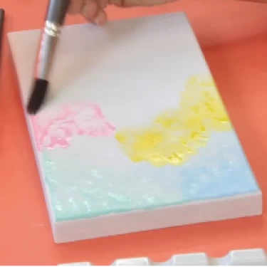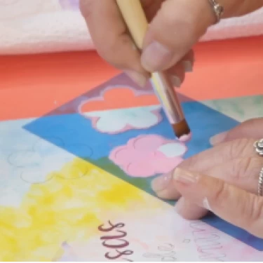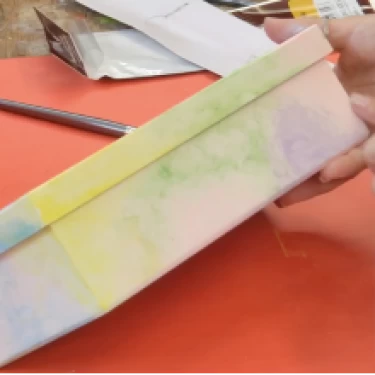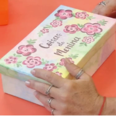 Encaixe a tampa na base da caixa e continue a execução do aquarelado, acompanhando as cores da tampa.