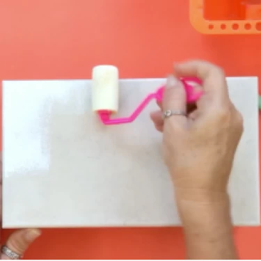 Aplique o rolinho sobre a tampa da caixa de MDF, alisando bem para padronizar a pintura.