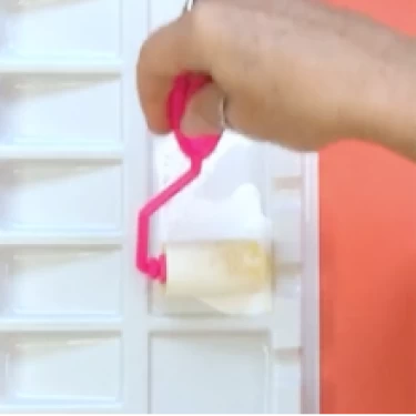 No godê, trabalhe o rolinho de espuma na tinta branca até carregá-lo por completo.