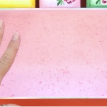 Pinte a parte interna da base da caixa com a tinta rosa-bebê e faça uma chuva americana com a cor rosa-médio. Inverta as cortes na parte interna da tampa.