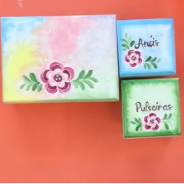 Monte caixinhas em diferentes tamanhos com a mesma técnica para colocar anéis, pulseiras, elásticos e presilhas.
