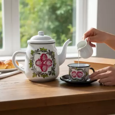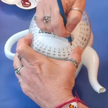 Com o auxílio do transferidor e lápis 6B, risque um círculo sobre o bule de ágata.