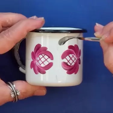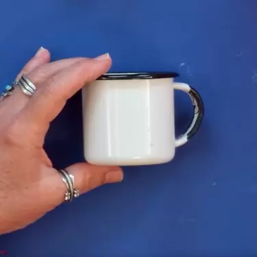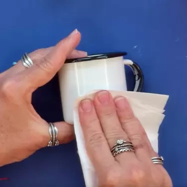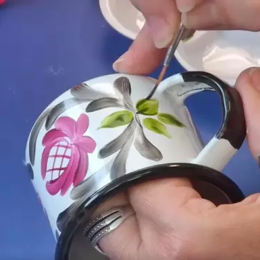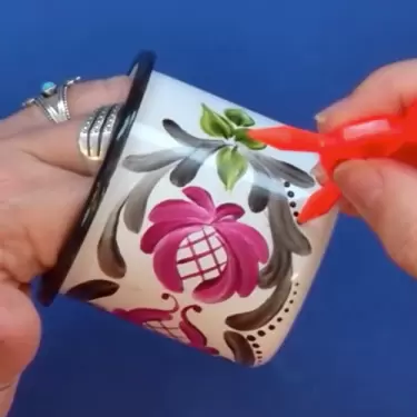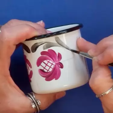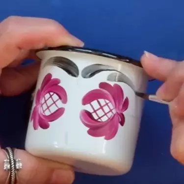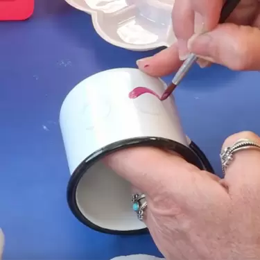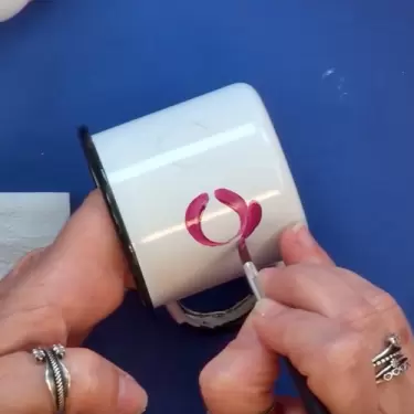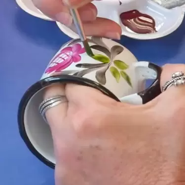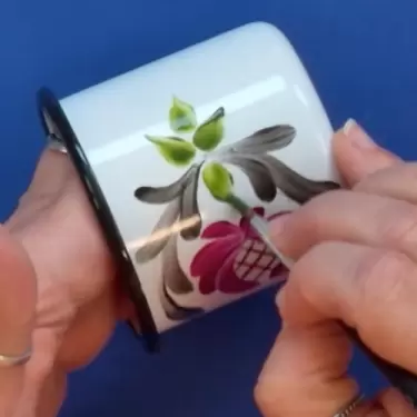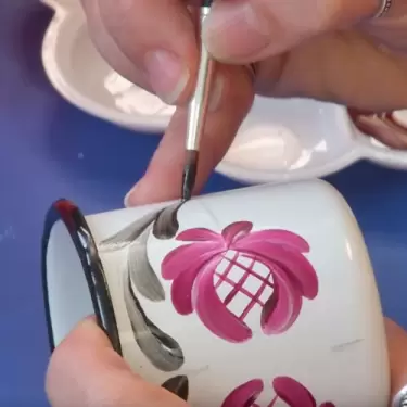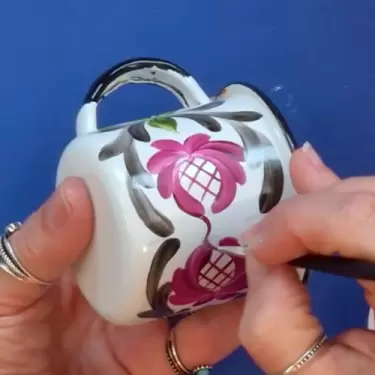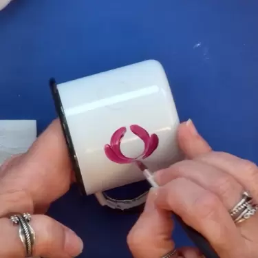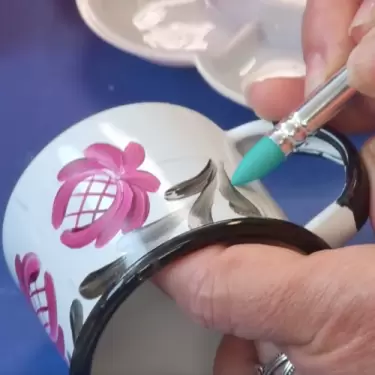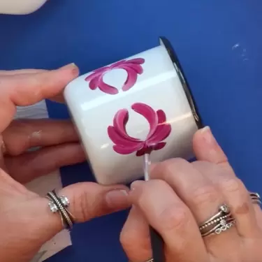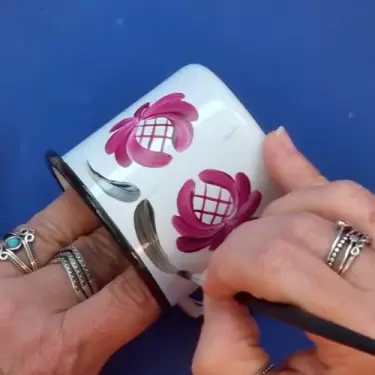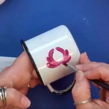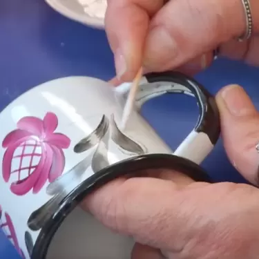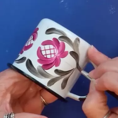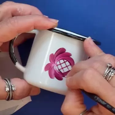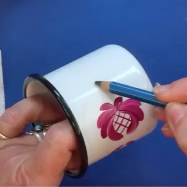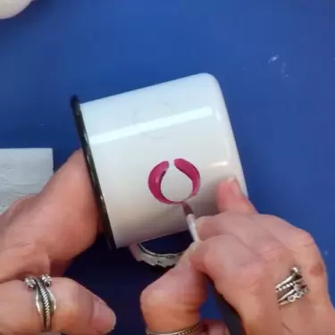 Pincele a metade do círculo desenhado na caneca, formando uma vírgula.
