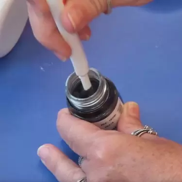 Carregue o pincel redondo na tinta preta e na tinta prata.
