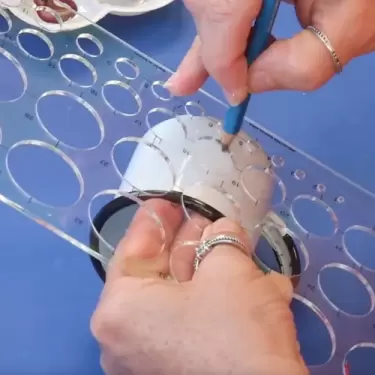 Risque dois círculos sobre a caneca de ágata, utilizando a régua de circunferências.