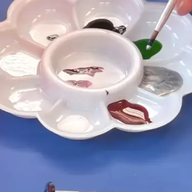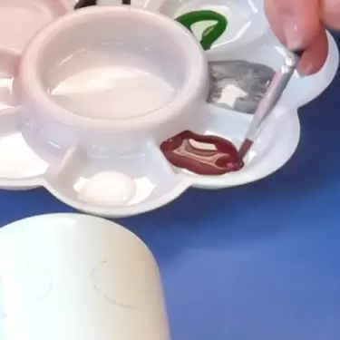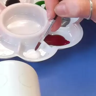 Pinte o outro círculo no mesmo processo, utilizando as tintas vinho e branca no pincel redondo.