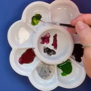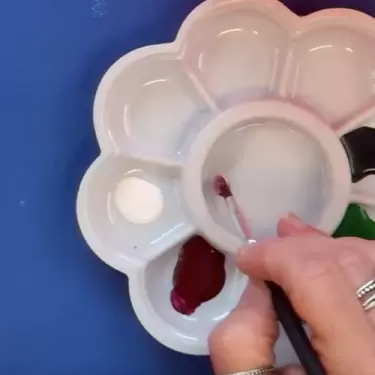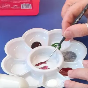 Coloque as tintas no godê flor e carregue o pincel na tinta vinho.
