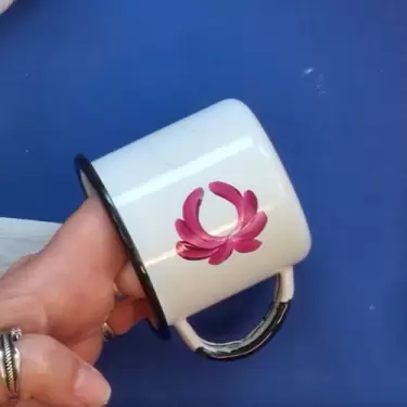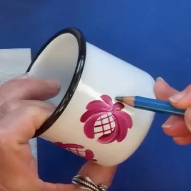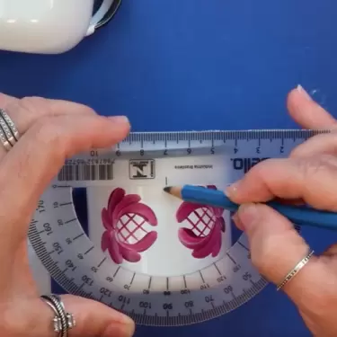 Com o auxílio do transferidor e do lápis 6B, marque o meio do motivo desenhado na caneca.