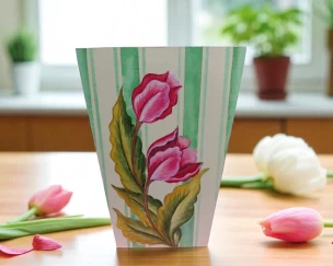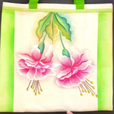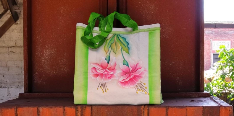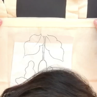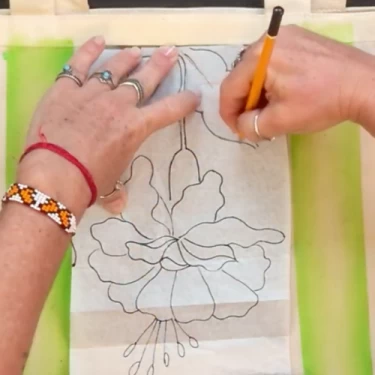Com o auxílio do carbono e do lápis, transfira o risco da flor para o centro da ecobag.