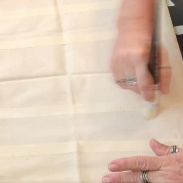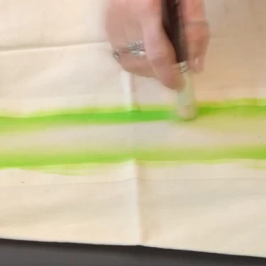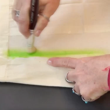 Carregue o pituá nº8 no diluente para tecido e, com movimentos circulares, aplique entre as tiras de fita crepe, sobre o tecido.