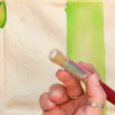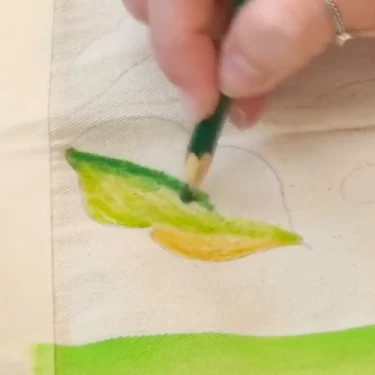 Pinte a folha, utilizando outra combinação de lápis aquareláveis verdes.