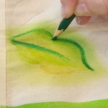 Reforce os contornos da folha, utilizando o lápis aquarelável.