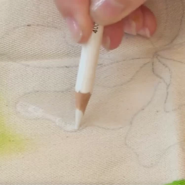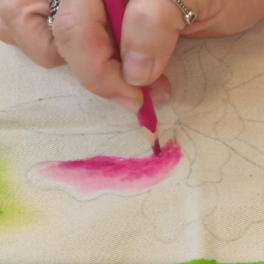 Para pintar as pétalas da flor, utilize a mesma técnica, iniciando com o lápis aquarelável branco na borda da pétala.