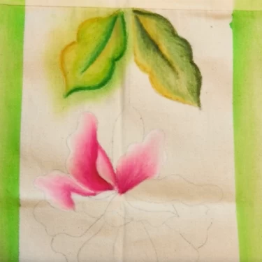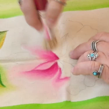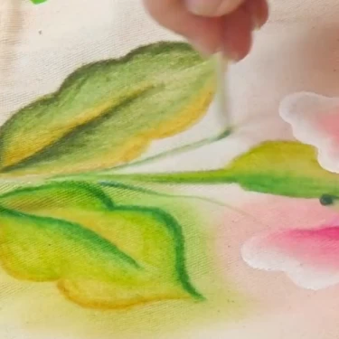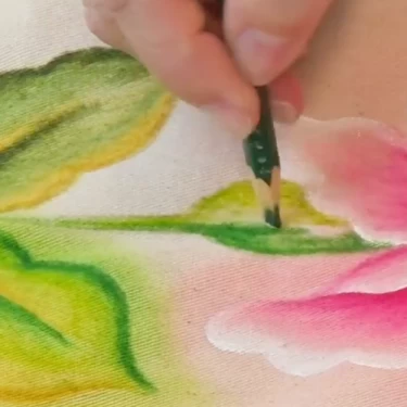Com o pituá nº8 e o diluente para tecido, esfume a pintura fazendo um sombreado ao redor da flor.