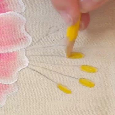 Com o pincel faca aplique o diluente para tecido sobre os pistilos.