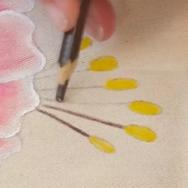 Pinte os pistilos com o lápis aquarelável amarelo.