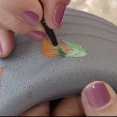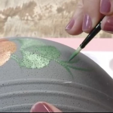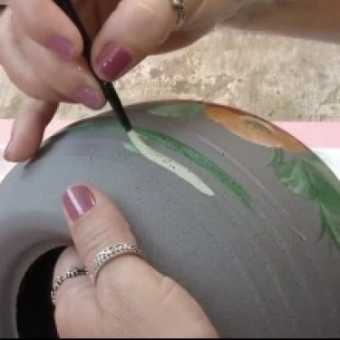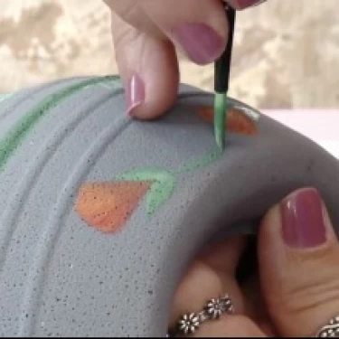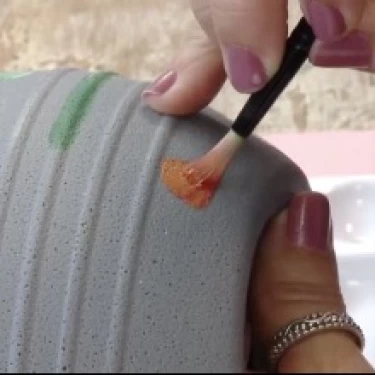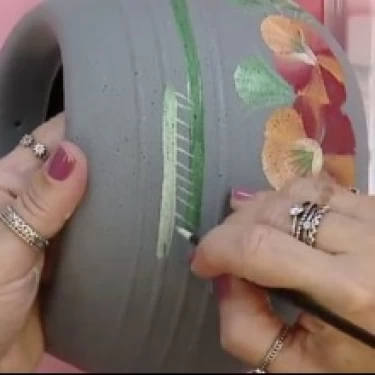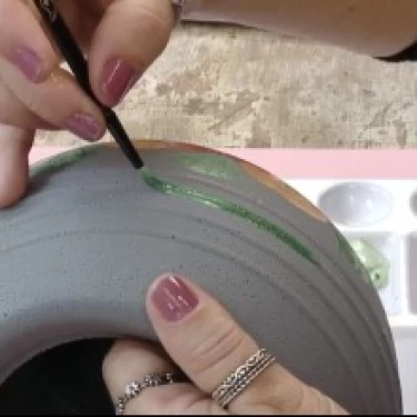 Para dar acabamento, contorne uma das linhas do cachepô com a cor Verde.