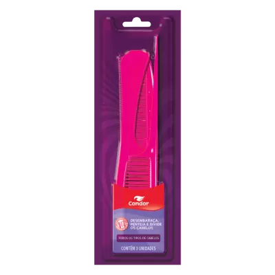 Conjunto de três pentes para pentear, desembaraçar e dividir os cabelos. Prático para família.