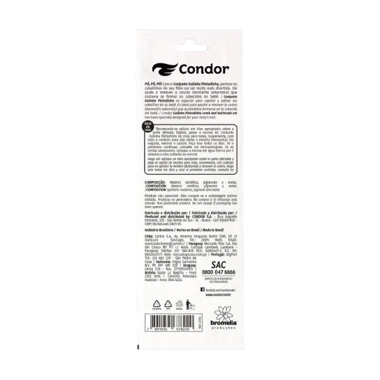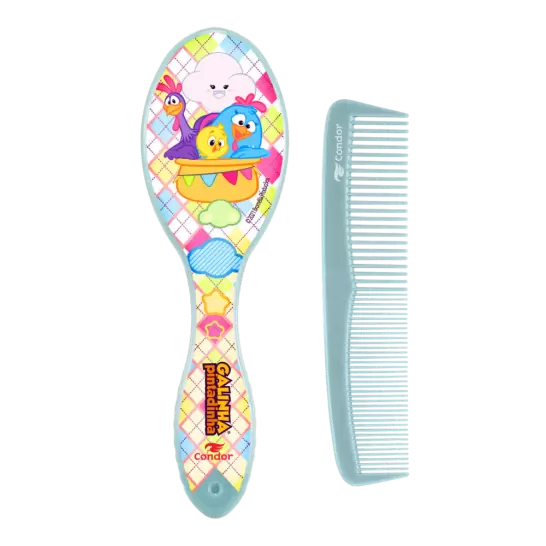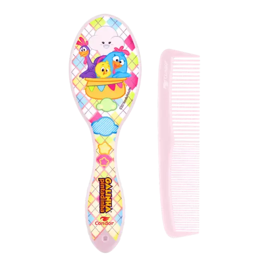 Com o Conjunto Galinha Pintadinha, pentear os cabelinhos do seu filho vai ser muito mais divertido. Ele ajuda a remover o cascão (dermatite seborreica) que costuma se formar na cabecinha do bebê. Recomenda-se aplicar um óleo apropriado sobre a parte afetada. Depois, passe a escova do Conjunto Galinha Pintadinha de cima para baixo, suavemente, com todo o cuidado para não afetar a moleira (fontanela). Em seguida, remova o cascão. Faça isso todos os dias.