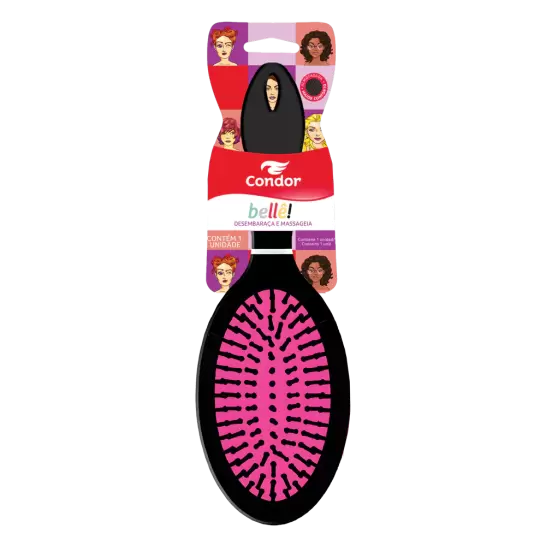 Escova almofadada que massageia o couro cabeludo enquanto desembaraça os cabelos. Ideal para soltar ondas de todas as estruturas de fio.