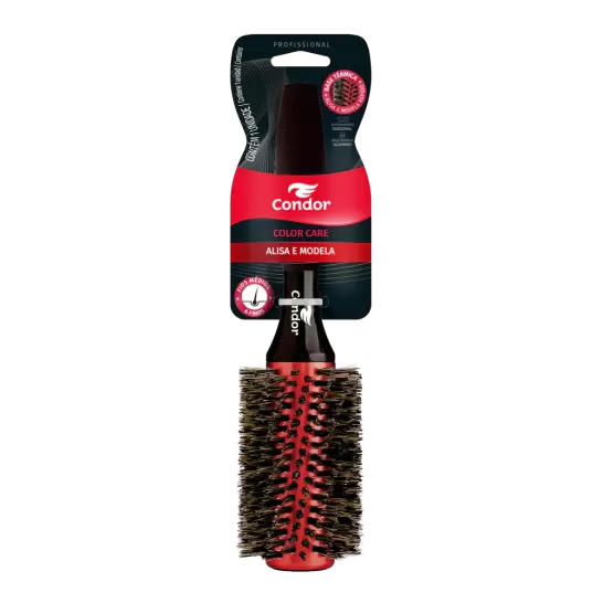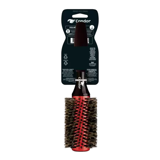 Escovas com cerdas mistas sendo naturais de porco e sintéticas, que oferecem maior resistência para alisar e modelar os cabelos. O entufamento em diagonal promove maior aderência e a base revestida de metal absorve melhor o calor do secador, ajudando na modelagem e no alisamento dos fios longos.