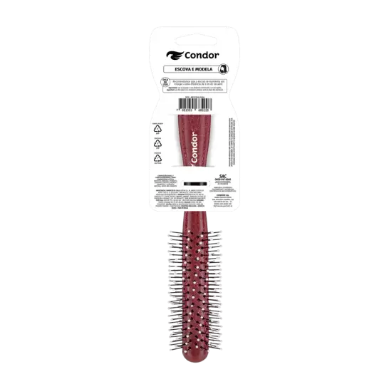 Escova com pinos com bolinhas nas pontas. Ideal para escovar e modelar cabelos curtos, finos e lisos.
