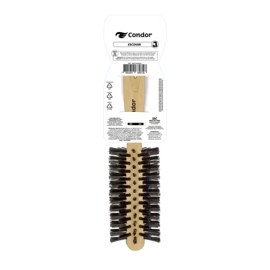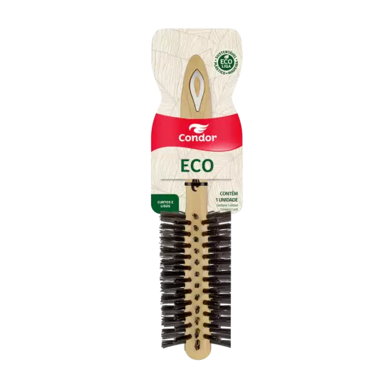 Modelo de escova compacta, ideal para levar na bolsa e escovar cabelos curtos e lisos.