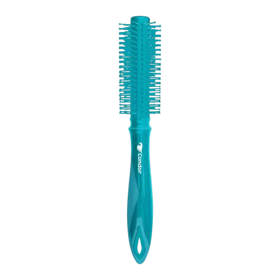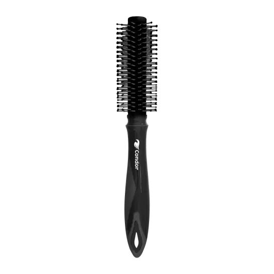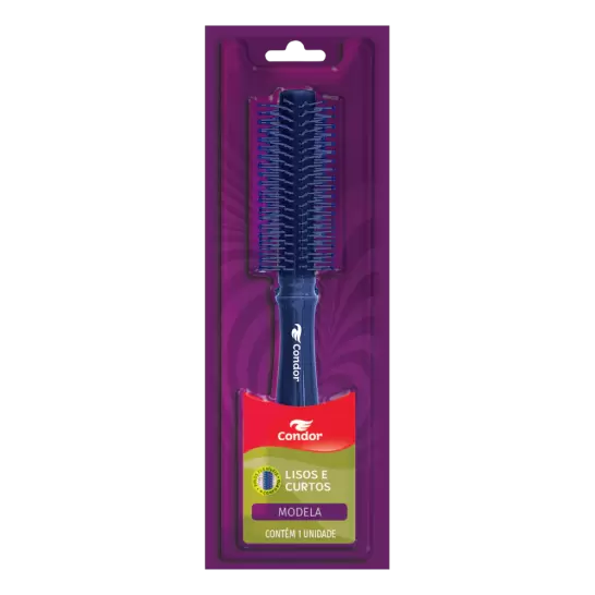 Escova no formato redondo, pinos com bolinhas nas pontas para maior conforto. Ideal para modelar cabelos curtos finos e lisos