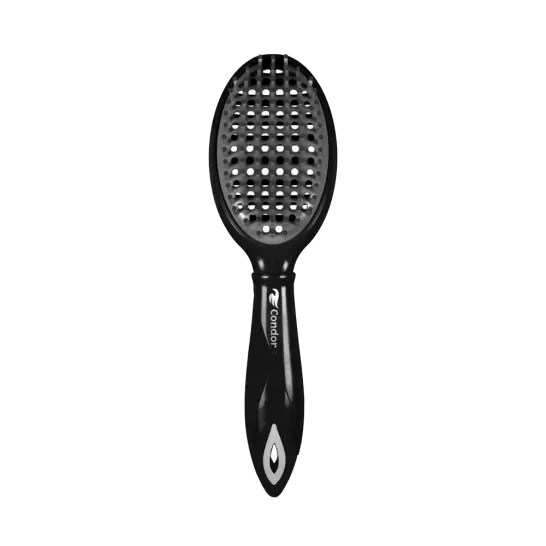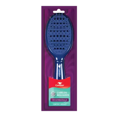 Modelo de escova oval vazada, ideal para desembaraçartodos os tipos de cabelos, secos ou molhados.