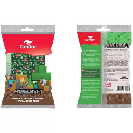 Design exclusivo inspirado no universo Minecraft, com abrasivo estampado que promove esfoliação suave.