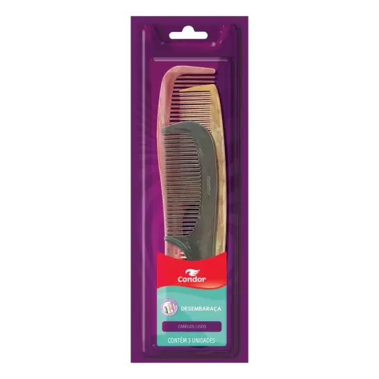 Kit Pente Style Condor são Pentes finamente decorados com cores da moda. Conjunto 3 pentes para desembaraçar cabelos lisos.
