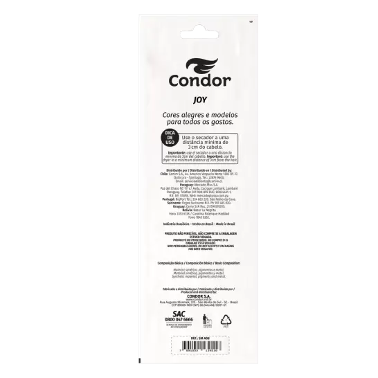 O Pente para Cabelo Joy Condor serve Pentear e desembaraçar cabelos lisos e finos. Pode ser utilizado para cortes.