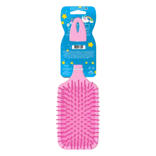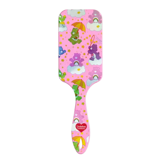 Brilho e encanto para a rotina de cuidados! A Escova Raquete Metalizada Ursinhos Carinhosos possui estampa especial com efeito metalizado que muda de brilho conforme a escova se movimenta, trazendo ainda mais destaque e diversão. Com base almofadada e pinos com bolinhas, ajuda a desembaraçar os fios com suavidade e conforto para o couro cabeludo. Ideal para todos os tipos de cabelo.